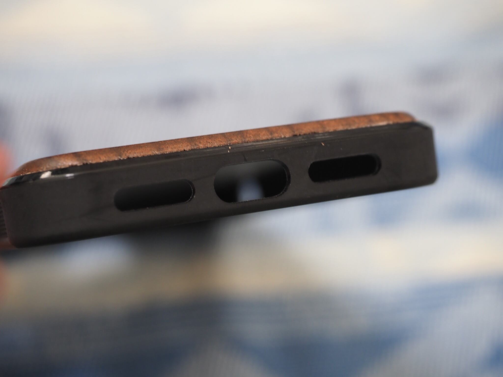 表面には天然のウォルナットとカリンを使用し、本体にかぶせる部分は樹脂で傷が付きにくい構造です。